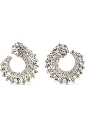 Украшения должны быть изящными, невесомыми, миниатюрными. К платью в стиле нью-лук на серебристой подложке подойдут серебряные украшения с горным хрусталем, черные замшевые туфли на подносочной платформе, прямоугольный ажурный серебристый клатч с черной окантовкой.