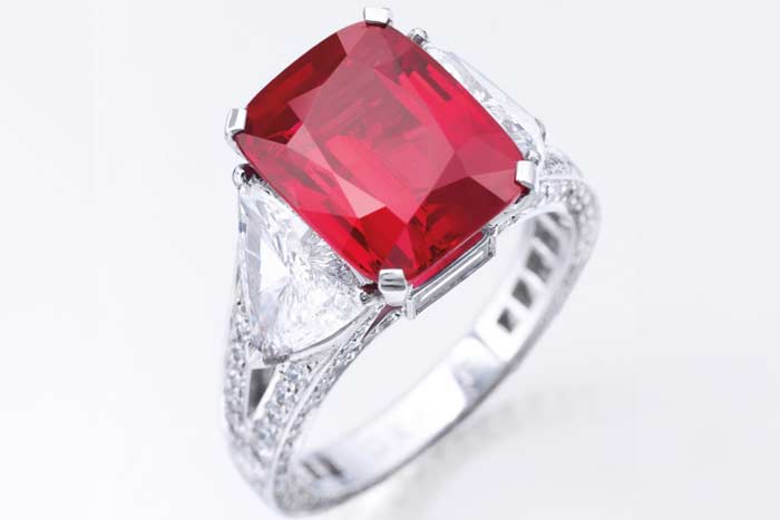 - Рубин Sunrise. Камень находится в кольце от известной фирмы Cartier, вес — 25,59 карат. Он был продан за сумму, превышающую 30 млн долларов, что гораздо больше цены Великого Могола.