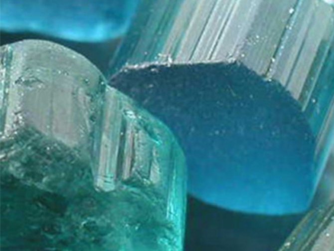- в гидротермальном зеленом берилле присутствуют трубчатые полости, которые видны под микроскопом;