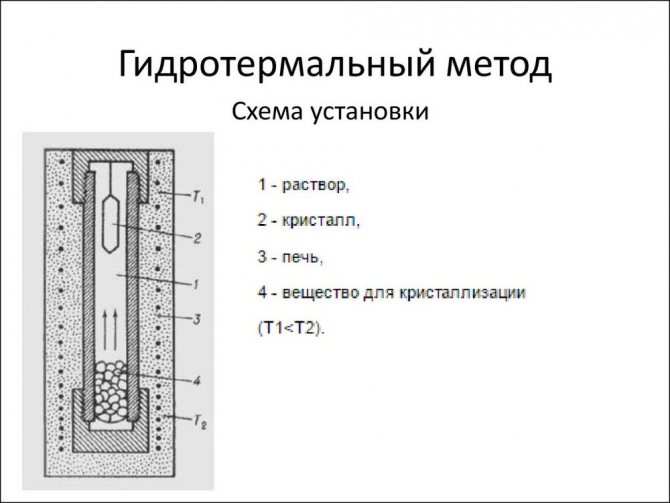 Гидротермальный метод имитирует природные условия, в которых взращивается камень, но он ускоряет все процессы. Если в естественной среде самоцвет образуется за 1-2 мл лет, в лаборатории его вырастят за 4 недели.