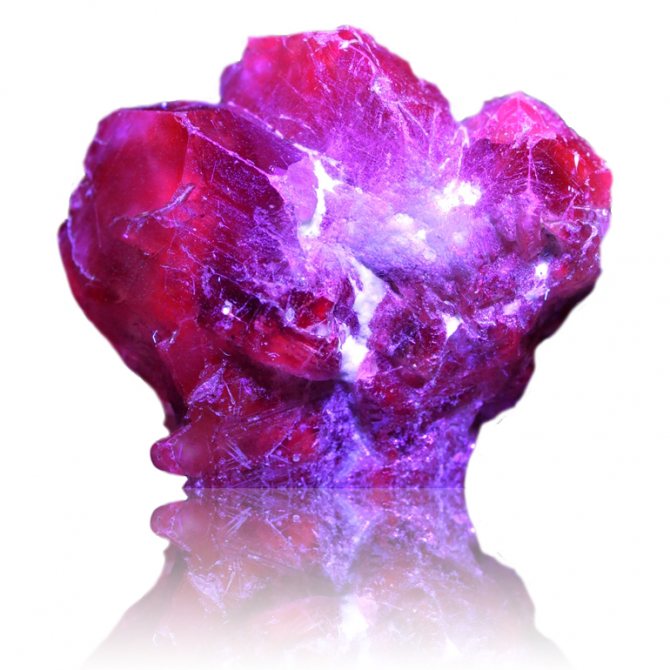 Рубин отличить от александрита также сложно. Редкие его разновидности демонстрируют целую палитру оттенков в том числе с включением синевато-зеленых тонов. Такие виды называются «голубиная кровь». Выявить, что при изготовлении украшения использовалась именно эта разновидность рубина, а не натуральный камень может только специалист.