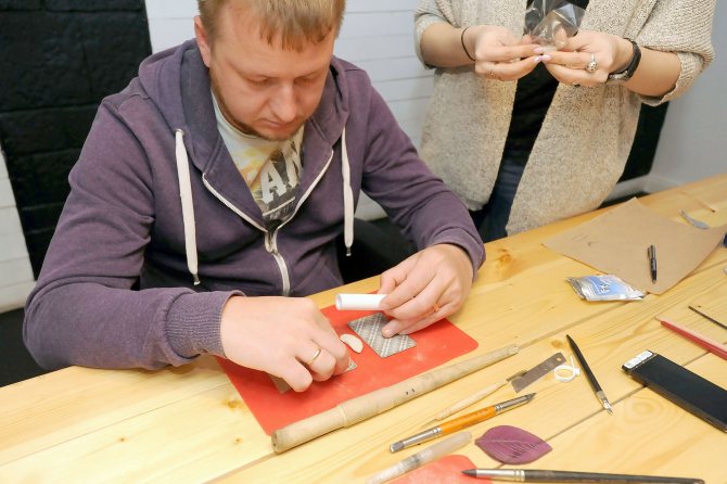 Весь процесс простой и понятный: вам нужно придумать украшение, сделать его, обжечь в печи (вода и пластификатор при этом сгорят, а частицы серебра прочно спекутся друг с другом), и на выходе вы получите серебряное изделие 999‑й пробы. Современная алхимия во всей красе! Перед началом работы руководитель школы Евгения показала нам, какими инструментами мы можем воспользоваться, чтобы создать именно то украшение, которое хотим.
