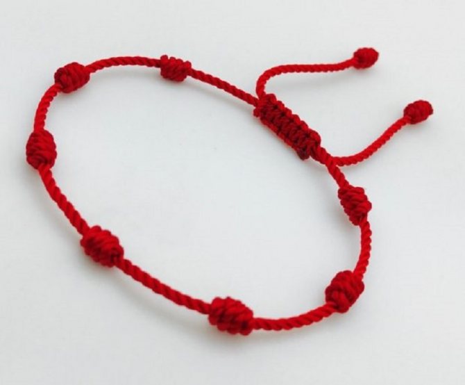 7 завязанных узелков имеют сакральный смысл. На фото показано готовое изделие. Такое же должно получится и у вас.
