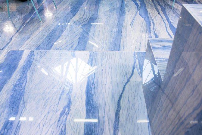 - Голубой ( синий) мрамор — является одним из самых редких, и поэтому он отличается высокой стоимостью. Структура материала крупнозернистая, и поэтому голубой мрамор характеризуется повышенной хрупкостью. Зачастую он используется для изготовления различных изделий, находящихся внутри помещения.