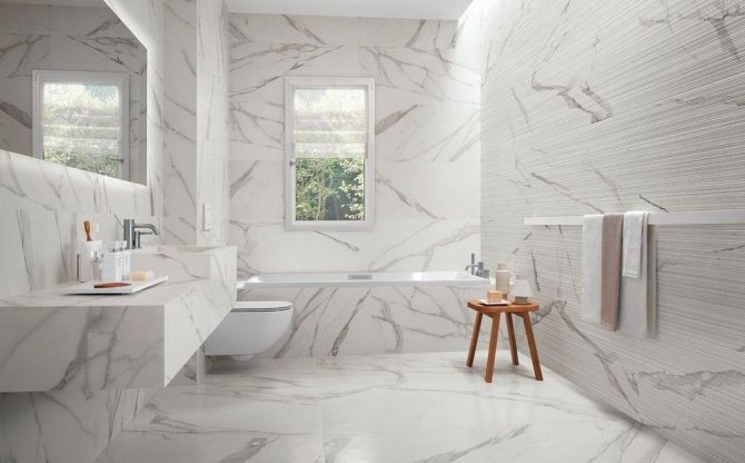 Брать самый дорогой материал не всегда оправданно. Например, на пол вместо мраморной плитки можно положить напольное покрытие из крошки — продукта переработки мрамора. За счет монолитности покрытие обладает высокими прочностными, гигиеническими характеристиками, влагонепроницаемостью.