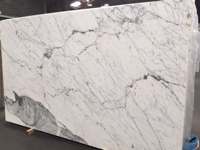 Немецкий серый, голубой или белый мрамор с очень четким и ярким узором, в котором хорошо заметны вкрапления.