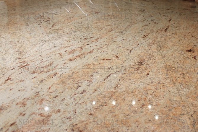 Желтый цвет породе придают гидроксиды и карбонаты железа. В результате она становится солнечно-желтой, с бежевыми и золотистыми переливами. Используется преимущественно для изготовления столешниц, подоконников и всевозможных декоративных элементов интерьера.