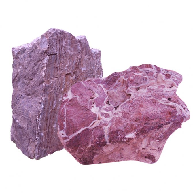 Благодаря присутствию оксида железа камень становится красным, розовым или «ржавым». Красная разновидность очень высоко ценится. Ею чаще всего отделывают торжественные помещения, залы и колонны. Розовый мрамор смотрится менее помпезно, но более нежно и романтично. Наиболее выгодно розовый цвет сочетается с зелеными прожилками.