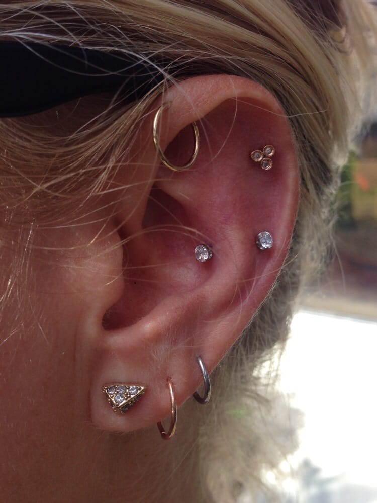 Если вы хотите придать немного неформальный вид уха, тогда с уверенностью можете сделать двойной, тройной и более пирсинг ушей. Двойной прокол сегодня очень популярен и уже не является чем-то особенным. Для желающих показать свою индивидуальность можно применить тройной и более пирсинг уха. Но у многих более трех сережек на одной мочке уха не помещаются, так дальше идет уже хрящ.