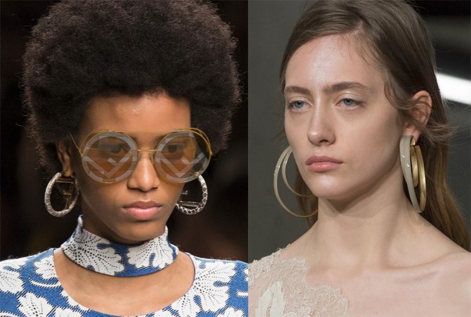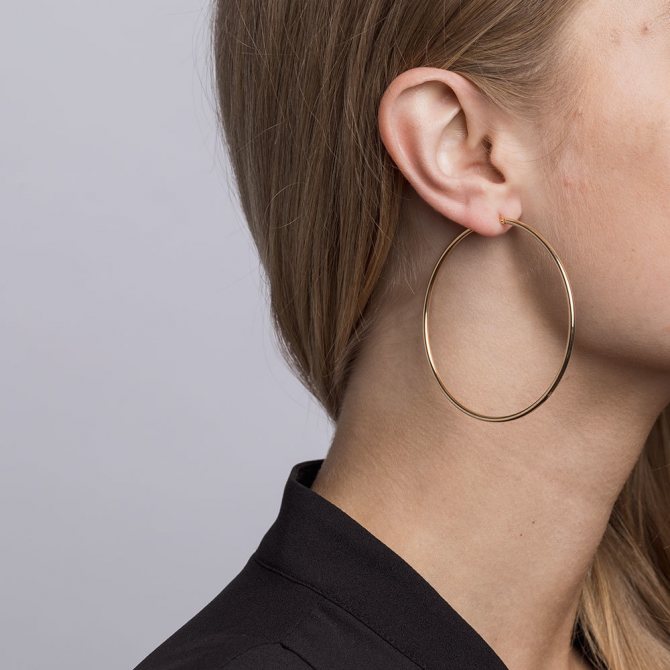 Актуальными можно будет считать в 2020-2021 году и серьги в форме колец. Так как они могут быть и массивными и многослойными. Если когда-то такие украшения красовались лишь на рок певицах, то сегодня надеть их может каждая.