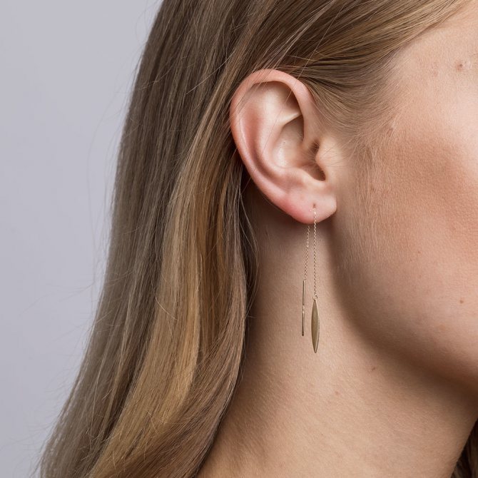 - Обладательницы овального личика могут носить любые модели сережек. Особенно красиво смотрятся длинные изящные цепочки. Они привлекут внимание к красивой шее.