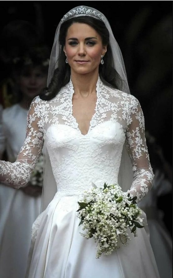 На свадьбе не обойтись без украшений. И если комплект украшений из нескольких элементов может перегрузить образ невесты, то единственные модные серьги мягко дополнят образ. Следуйте примеру Кейт Миддлтон, которая дополнила наряд нежными псевдовинтажными сережками от Robinson Pelham. А тиару ей одолжила сама Елизавета II. Все правила соблюдены и образ герцогини стал классическим.