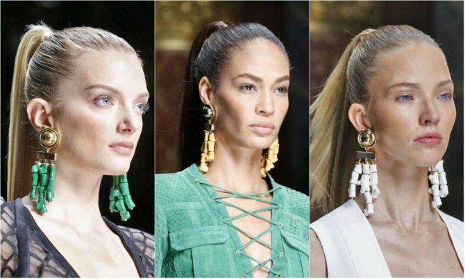 Яркие пластиковые серьги появились на показе Céline и привлекли внимания больше, чем наряды. Оригиналы Céline не всем по карману, но появилось множество подражателей, так что купить популярные серьги сегодня не проблема. Лучше всего такие выглядят в комбинации с total white или pastel look в стиле минимализм. Летние белые платья, базовые рубашки и футболки – лучшая компания акцентным украшениям.