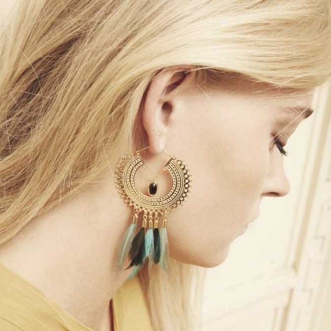 Оригинальные – девушкам, предпочитающим творческий подход, понравятся необычные серьги: минималистичные, протяжки, с важными сердцу символами и даже буквами. Такие требуют особого наряда, например, платья в стиле бохо.