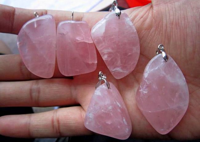 - Розовый кварц. Самоцвет насыщенного розового цвета, высоко ценим ювелирами.