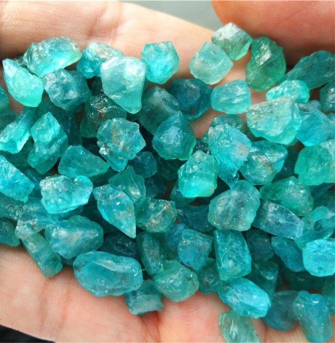 - Хлорапатит (преобладание хлора) — это разноцветные камни со стеклянным блеском.