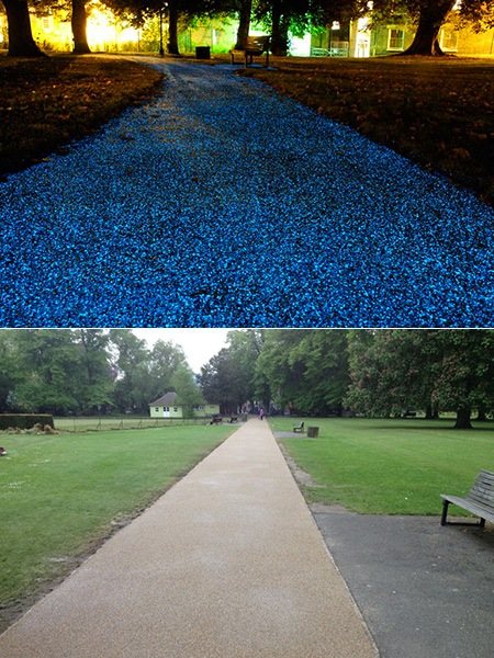 Делаем светящиеся камни своими руками.Чтобы равномерно нанести красящий состав на мелкие и средние булыжники, лучше использовать заливку. Красящий состав разводят в специальной таре. Заранее нужно подготовить место для просушки. До полного высыхания камни нельзя выкладывать на участок. Частички пыли впитаются в поверхность, и засохнут. Это уменьшит эффект свечения. Смыть пыль и грязь будет невозможно.