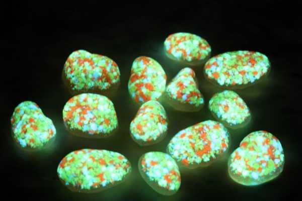 Флуоресцентные краски — это самый быстрый способ сделать светящийся декоративный камень своими руками.Изделия выбирают самостоятельно: