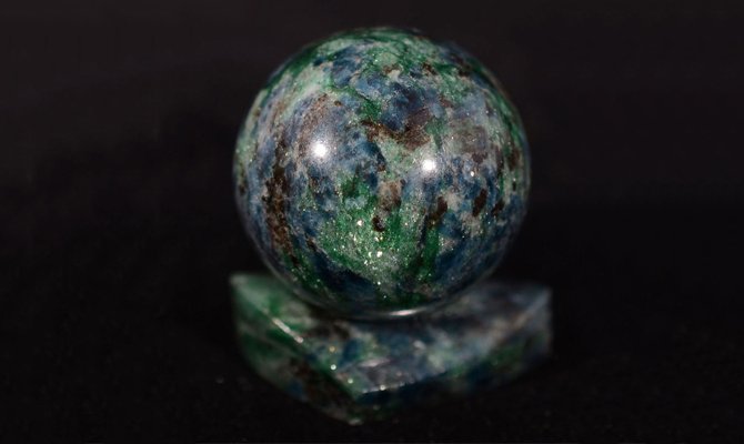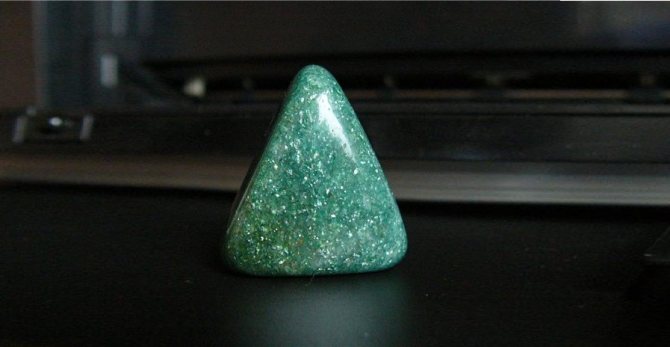 - Авантюрин – помимо того, что этот минерал является разновидностью фуксита, его так же относят к кварцевым породам. Обладает темно-серым или черным оттенком с мелкими включениями блестящих кристаллов.