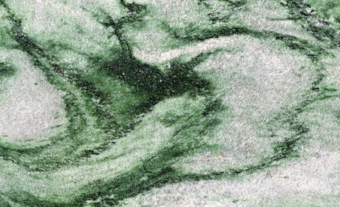 Прекраснейший, поделочный камень, включающий в себя фуксит, карбонат кальция и другие минералы называется лиственитом. На Урале ведется добыча этого минерала, однако, данное месторождение, лишь одно из многих мест добычи зеленого мрамора.