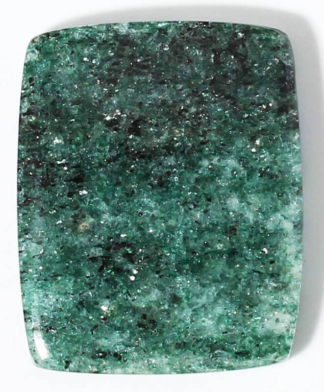 У минерала богатый изумрудный оттенок. Тем не менее, мастера ювелирного дела нечасто работают с ним. В магазинах изредка можно встретить ожерелья и браслеты из него. В качестве поделочного материала камень используют чаще. Из фуксита создают статуэтки, шары, подставки и прочие предметы. После процесса полировки его поверхность сильно блестит. А узор самоцвета обретает яркость и исключительность.