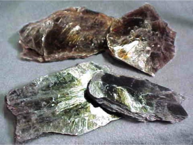 Поскольку это слюда, описание ее во многом совпадает с тальком. Чтобы не перепутать эти виды камней, необходимо обратить внимание на их листочки. У талька они лишены упругости, и это является его главным отличием от мусковита.