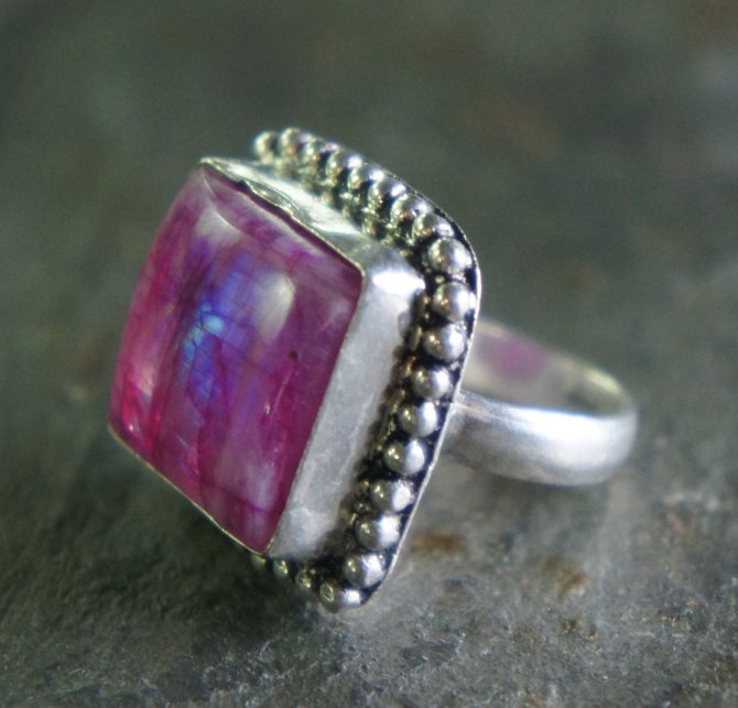 Полную радугу в камне видят редко. Намного чаще отблески напоминают лунный свет или дорожку на темной воде. Самоцвет словно манит к себе, зачаровывая, светясь внутренним светом.