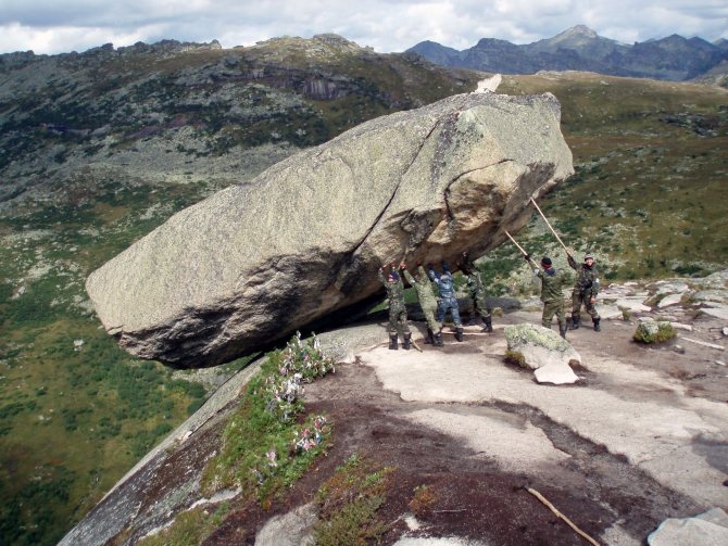 При этом рассказывают, что находились желающие попробовать приподнять камень или наклонить его еще сильнее над пропастью – сделать это так никому и не удалось . Камень находится в своем положении уже много лет. Хотя за последние годы в этом районе значительно увеличилось количество землетрясений, которые обладают гораздо большей силой, чем группа из несколько людей. Даже процесс выветривания горных пород не оказывает влияния на Висячий камень в Ергаках.