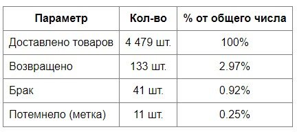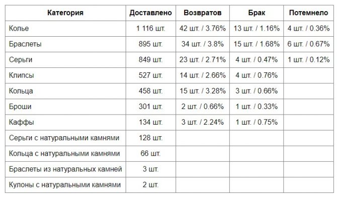 Очень важно рассматривать именно розничные продажи — розничные Клиенты сразу начинают использовать украшения, поэтому статистика более объективная. У оптовых Клиентов украшения могут значительное время задерживаться на складе или прилавке. А темнеют изделия, как правило, именно при носке.