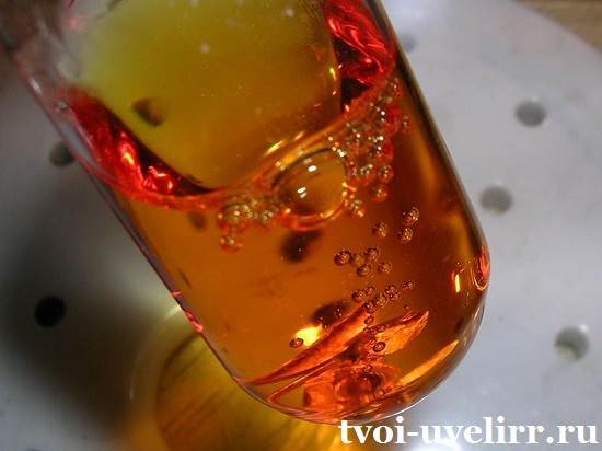 Раствор поэтому окрашивается в желтоватый цвет. При нагревании состав разлагается с выделением соляной кислоты и хлорида золота, который имеет красновато-коричневый цвет.