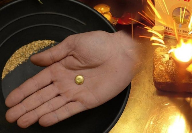 Молекулы золота оседают на дне сосуда. Для того чтобы соединить их получить в форме цельного куска, нам понадобится гидразин. В жидкой форме гидразин бесцветен, но использовать лучше порошок, так как он не имеет неприятного запаха. Потребуется размешать в 1 литре воды примерно 150-200 грамм гидразина и влить получившийся раствор в царскую водку.