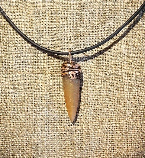 Белемнит (чертов палец) имеет более высокую плотность по сравнению с янтарем, поэтому его гораздо труднее обработать. Как правило, из окаменелостей делают авторские, уникальные украшения. Из них создают подвески, бусы или кулоны, напоминающие первобытные украшения.