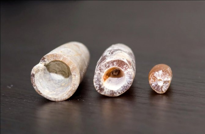 Если белемниты найдены среди осадочных пород, они имеют правильную, геометрическую форму и острые края. Если камень промыть водой, он приобретает гладкую, отполированную форму.