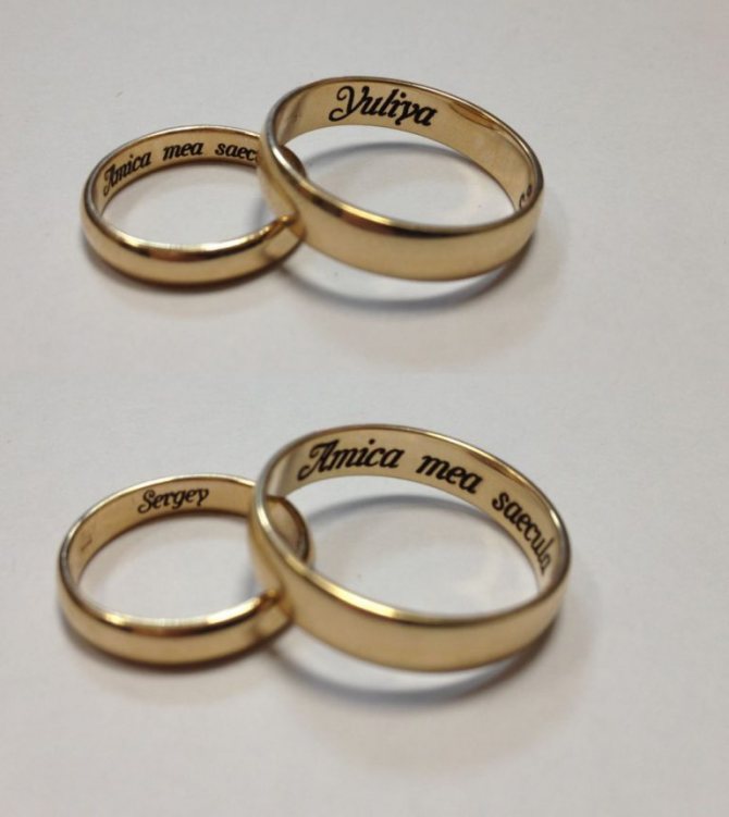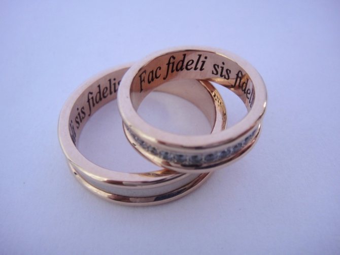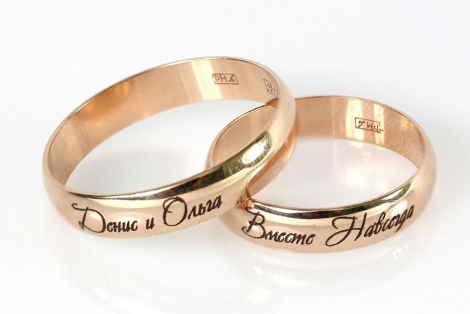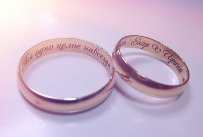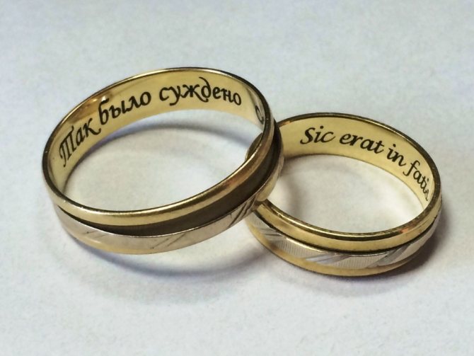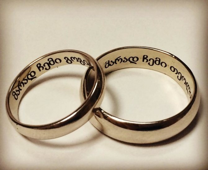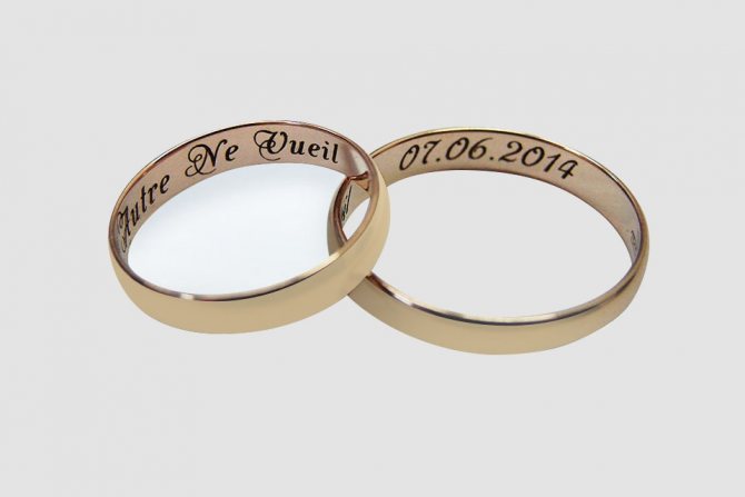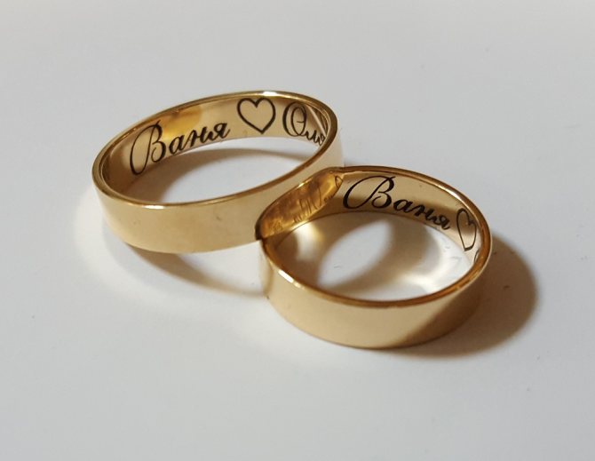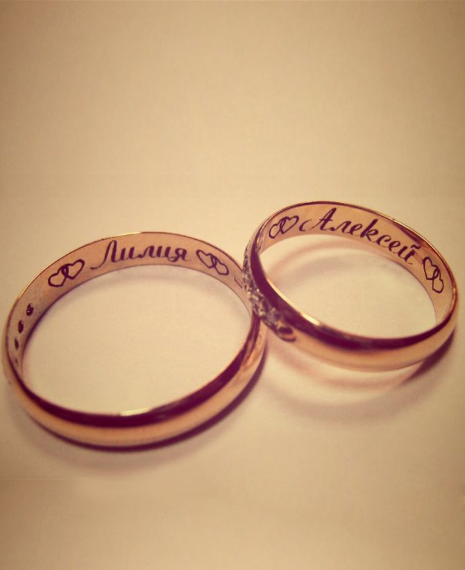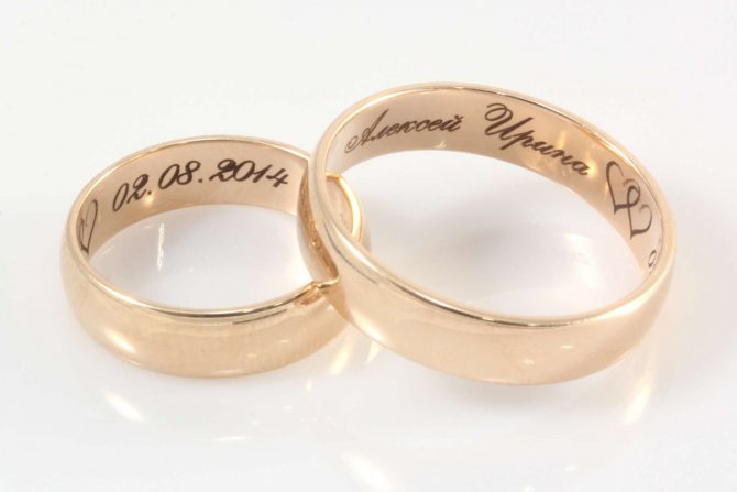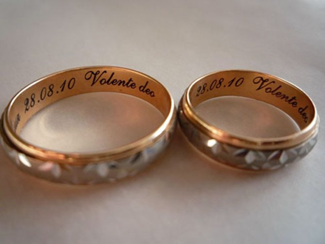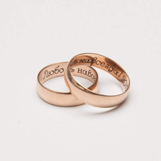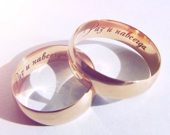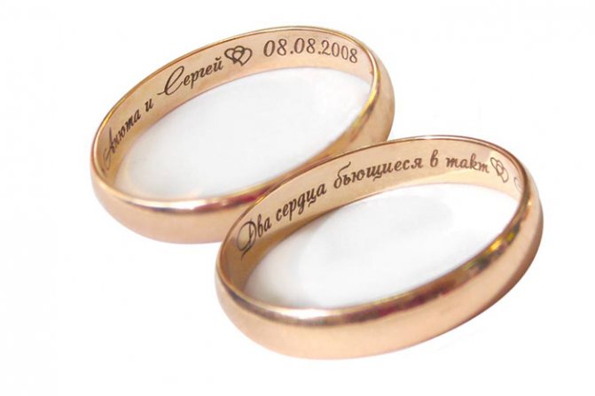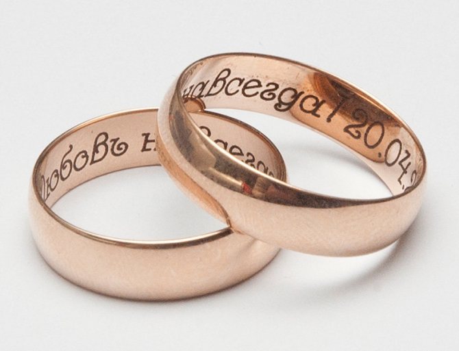 Если речь идет о приметах, то делать надписи на обручальных кольцах нежелательно – они должны быть гладкими, без разнообразных украшений. Говорят, это помогает сохранить семейные узы и избежать проблем на жизненном пути.