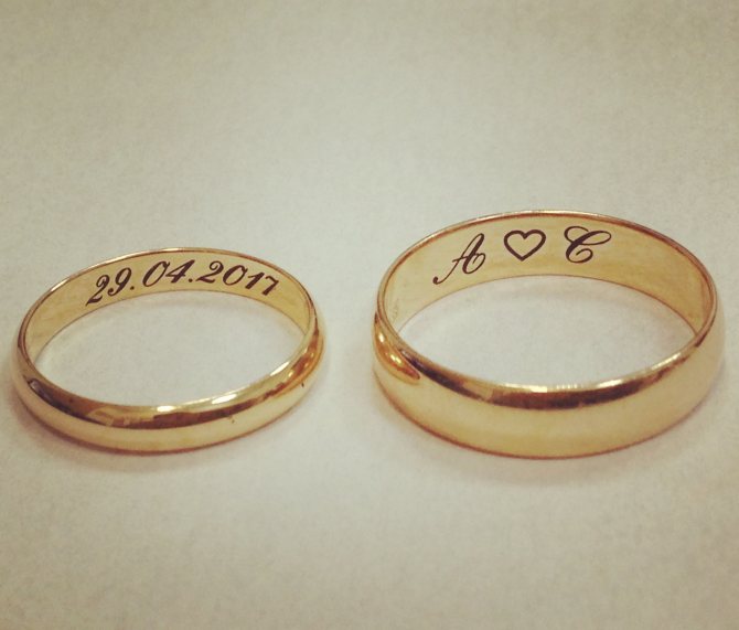 Некоторые молодожены, желающие сделать гравировку на своих обручальных кольцах, сталкиваются с тем, что их родители и родственники старшего возраста начинают отговаривать от такой идеи, ссылаясь на приметы. Действительно есть примета, что чем ровнее обручальные кольца у пары, тем ровнее будет их семейная жизнь.
