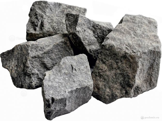 - Главные достоинства габбро-диабаза для бани – высокая теплопроводность в сочетании с вполне доступной ценой. Уплощенная форма удобна при укладке в печь.