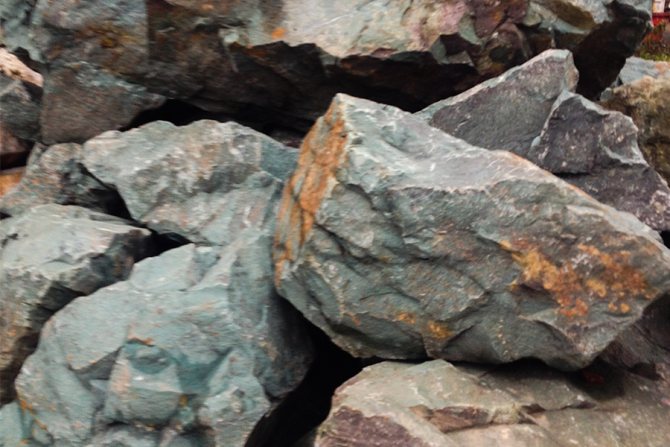 - Очень полезно использовать габбро-диабаз в каменках проточного типа. Структура поверхности позволит легко очищать его от сажевых отложений, а после того, как они станут неустранимыми, заменить засыпку новой.