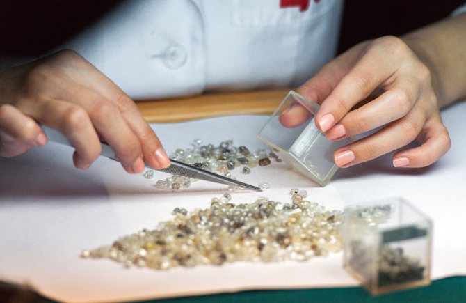 После очистки алмазы отправляются в сортировочные центры. Там они распределяются по четырем характеристикам:
