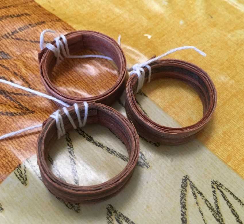 1) Подготовьте желаемое количество шнурков нужной длины в зависимости от размера кольца. Учтите, что шнурок будет сложен вдвое.