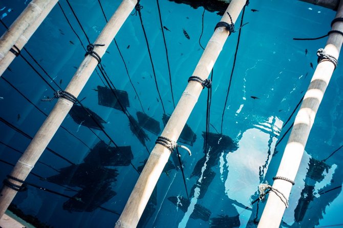 В естественных условиях только 0,1% раковин имеет подобный окрас. Поэтому, кстати, старинных желтых жемчужин — даже бледного оттенка! — известны единицы. Не самая высокая вероятность зарождения жемчужины суммируется с низкой вероятностью нахождения раковины ныряльщиком. И представьте теперь, что в эту игру невозможностей вступает редкий цвет. Крошечные моллюски первые несколько месяцев жизни проводят в яслях — цистернах с циркулирующей морской водой, обогащенной фитопланктоном. Затем их помещают в плоские сетчатые садки, раковины переходят на взрослый рацион, за который отвечают воды моря Сулу. Смотрите, жемчуг еще не начали выращивать, а чистота воды, отсутствие вредных примесей и деструктивных практик рыбалки уже начинают играть роль в его производстве.