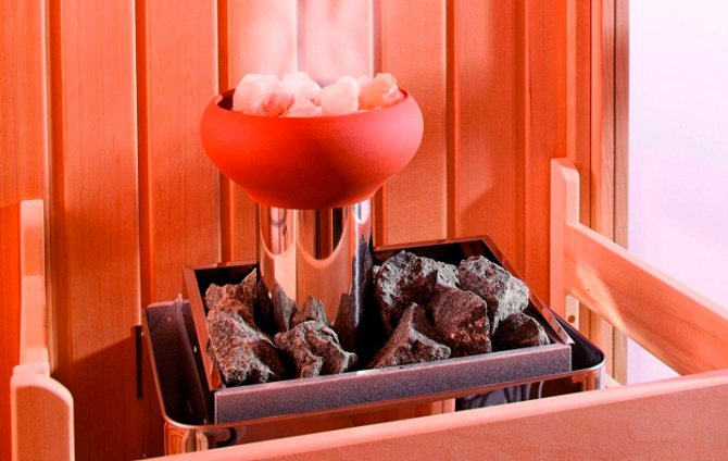 Состав воздуха в парилке, снабжённой солевыми камнями, идентичен морскому и океанскому.
