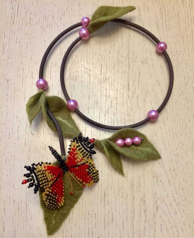 Украшение из лент и бусин