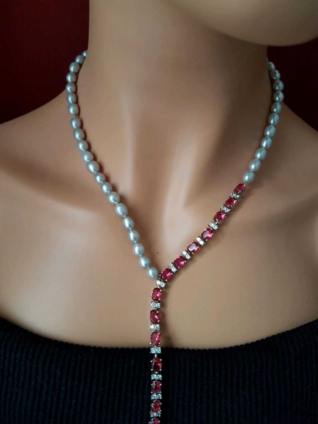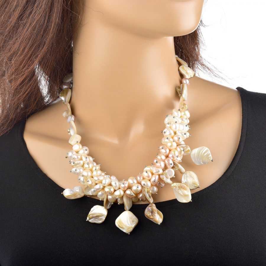 Женщина всегда несет в себе какую-то загадку. Подчеркнуть это помогает богатое убранство жемчужного колье. Оно напоминает прекрасные королевские украшения, которые всегда уместны на вечерних шикарных нарядах.