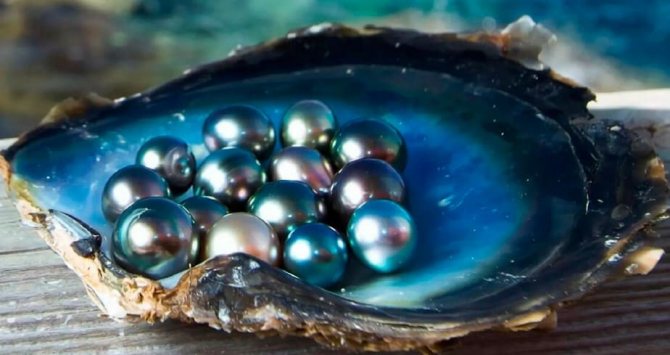 Наиболее редкий экземпляр с уникальными внешними данными. Цвет жемчужины не совсем чёрный, а с серо-синим оттенком, поверхность блестит как металл. Производятся такие камни на труднодоступном Таити. Чтобы сделать бусы из чёрного жемчуга, потребуется собирать материал не один год, поэтому такие изделия очень дорогие.