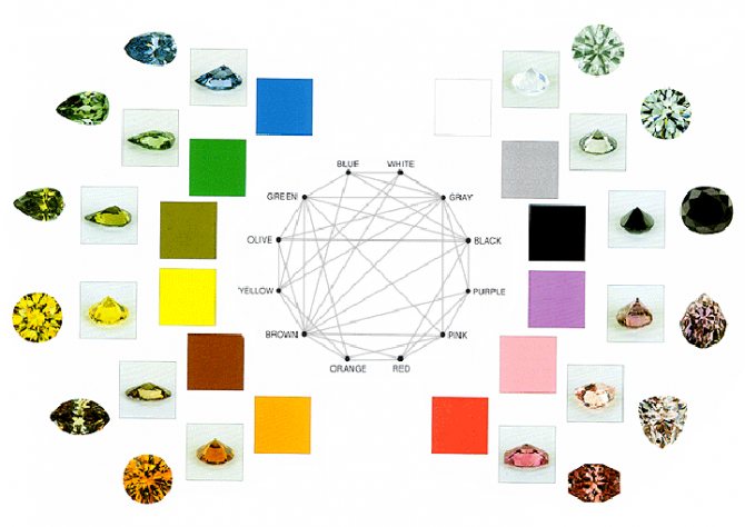 Основные цвета помимо классических прозрачных бриллиантов следующие: