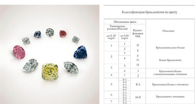 По цвету существует подразделение всех бриллиантов на следующие группы: