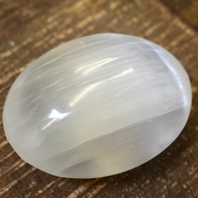Семелит обладает перламутровым блеском и лёгкой прозрачностью. Внутри камня находится световая полоса, которая перемещается в зависимости от угла наклона.