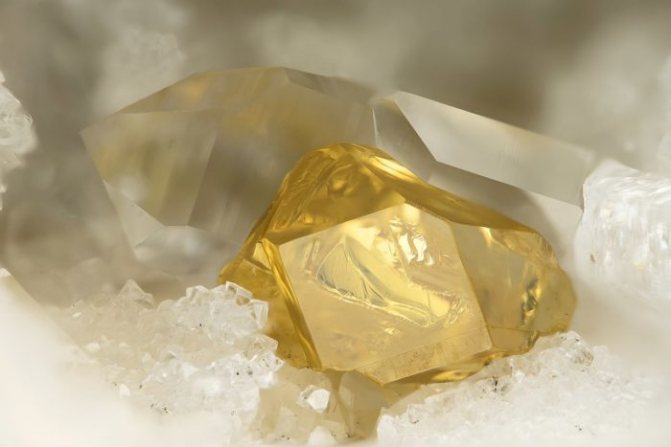 - Клейофаны – прозрачные кристаллы, окрашенные в медовый, светло-желтый или зеленоватый цвет, не содержат железо;