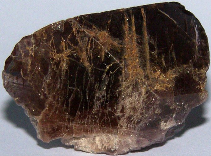 Коричнево-серый аксинит выглядит как раухтопаз, их легко спутать. Однако аксиниты не бывают крупными, лишены «дымчастости».