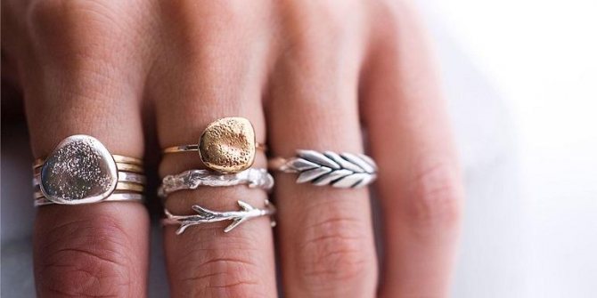 В этом сезоне как никогда модно носить золотые перстни, небольшие серьги в сочетании с кольцами, инкрустированные необычными камнями или вставками. Для людей, не готовых переплачивать за украшение ювелиры разработали серию серебряных украшений с интересными золотистыми вставками.